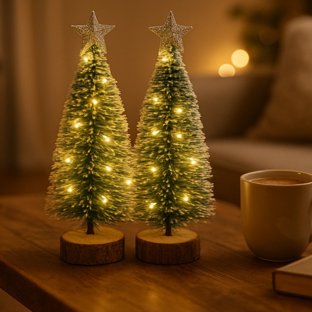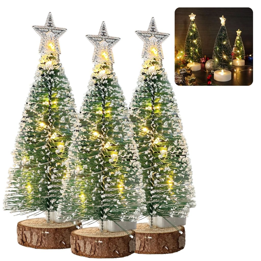 3Pcs Mini Árvore De Natal Plástica Com Luz De Pinheiro De Cedro Pequena Branca Quente Para Decoração De Mesa De Festa