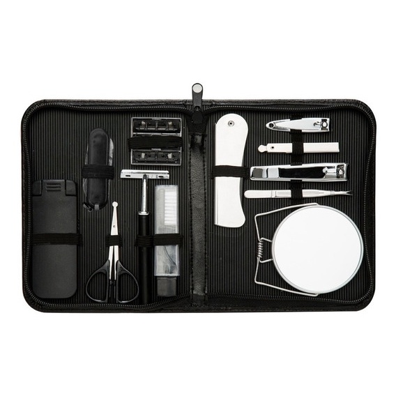 Kit Para Viagem Masculino Com 12 Peças No Estojo de Couro OVOGA DH-218