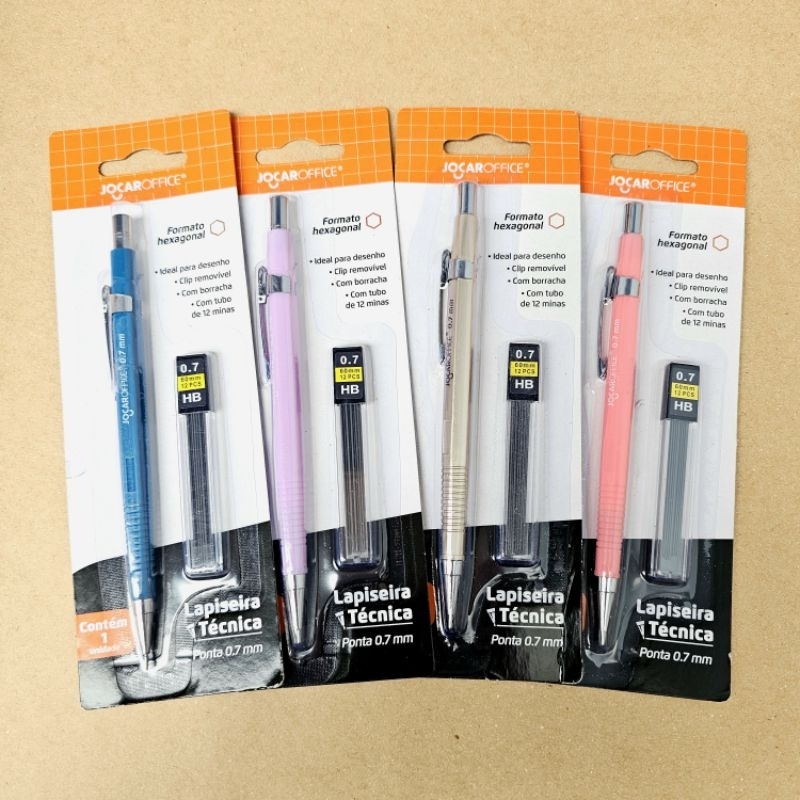 Lapiseira Técnica 2B 0.7 Com Tubo De Grafite Blister Jocar Office Material Escolar, Escritório