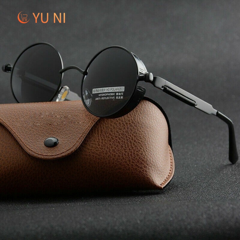 Óculos de sol de estilo punk redondo neutro com espelho de mola UV400 1 peça