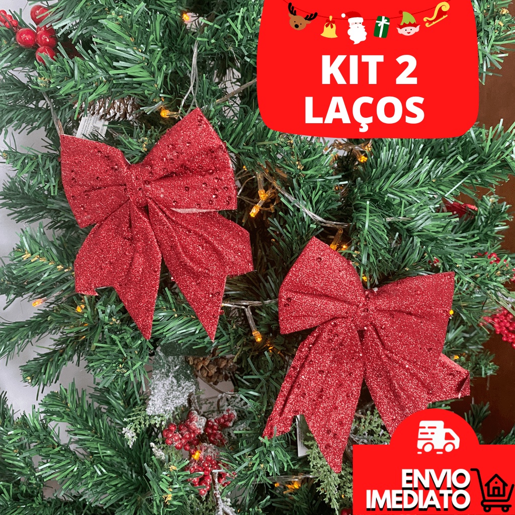 Laço Enfeite Natal Árvore de Natal Laço Para Decoração Natalina Brilhoso Com Glitter Ornamento Natal Kit Com 2 Unidades