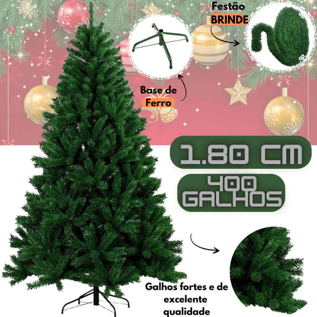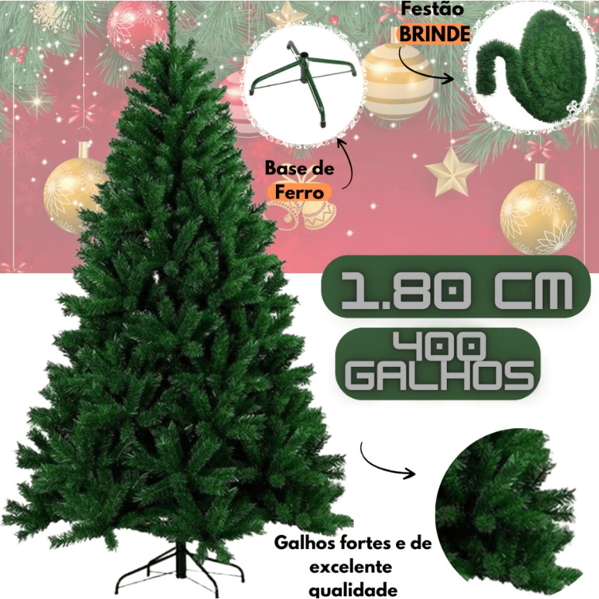 Árvore de natal Pinheiro Verde tradicional luxo 1,80m 400 Galhos cheia Envio Imediato