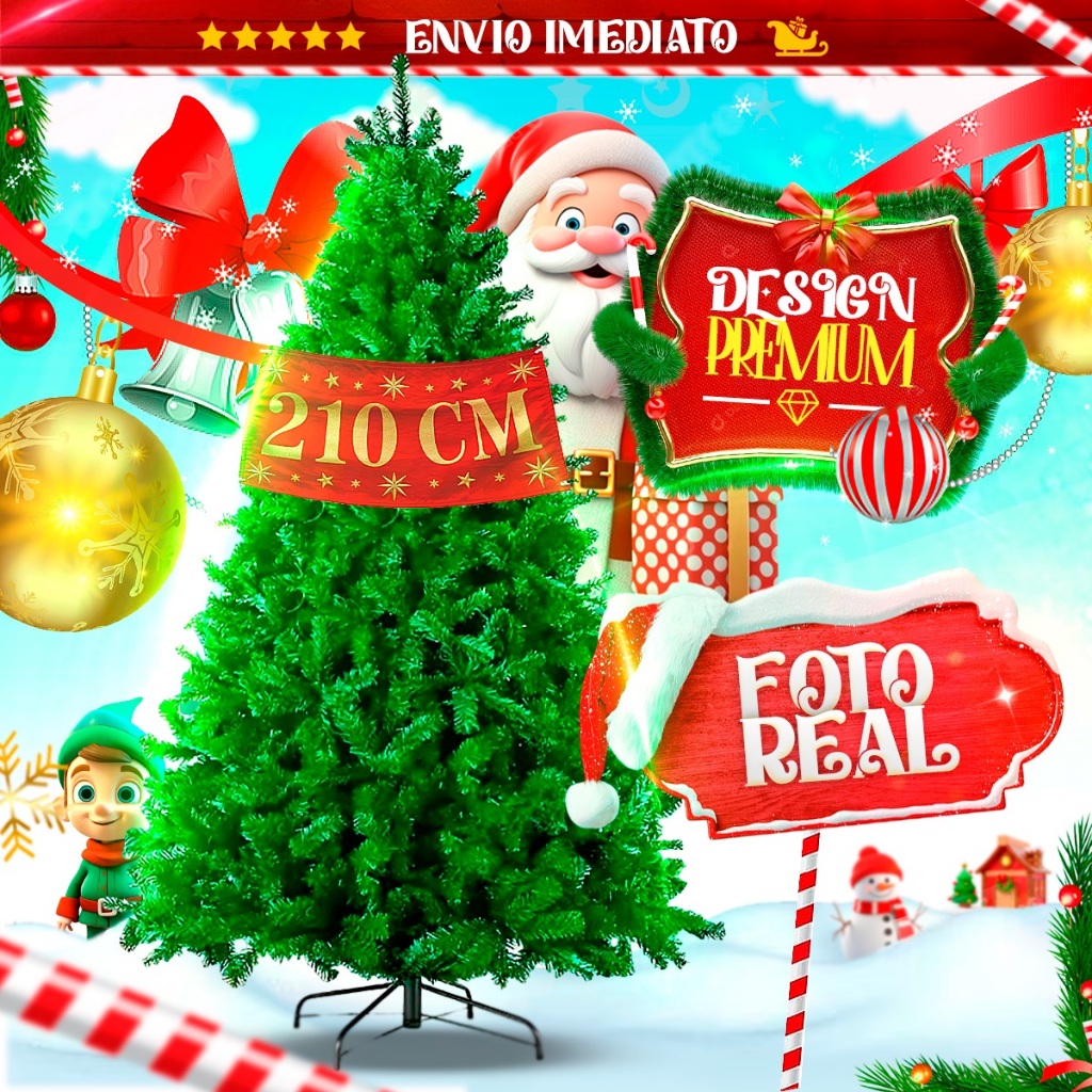 Árvore Pinheiro de Natal Verde Tradicional 2,1 metros 1000 galhos Grande Premium Luxo