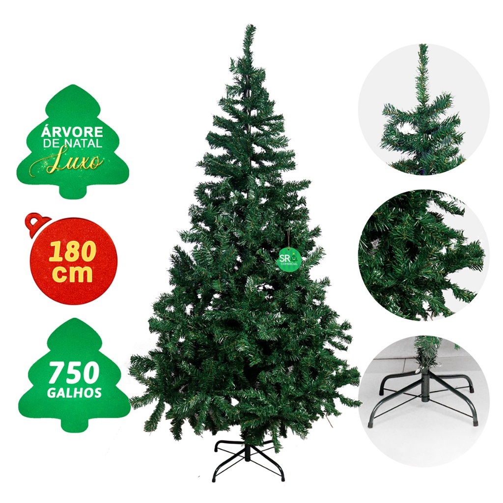 Árvore de Natal Cheia Luxo 1,80M - Estilo Pinheiro Tradicional 750 Galhos 180cm - Verde