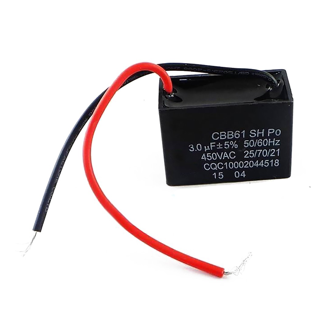 1pc Novo Capacitor De Partida Do Ventilador CBB61 3UF AC 450V 50/60Hz Fio De Chumbo Vermelho Preto 10cm