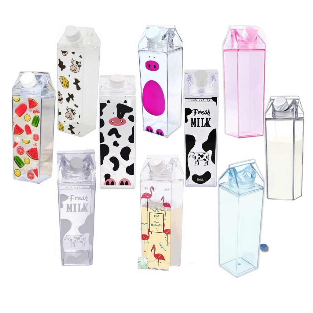 Garrafa de Acrílico Plástico Formato de Caixa de leite Sem BPA Resistente 500ml e 1L Geladeira Água Suco Leite Chá Quadrada Caixa Com Tampa Bebida Frasco