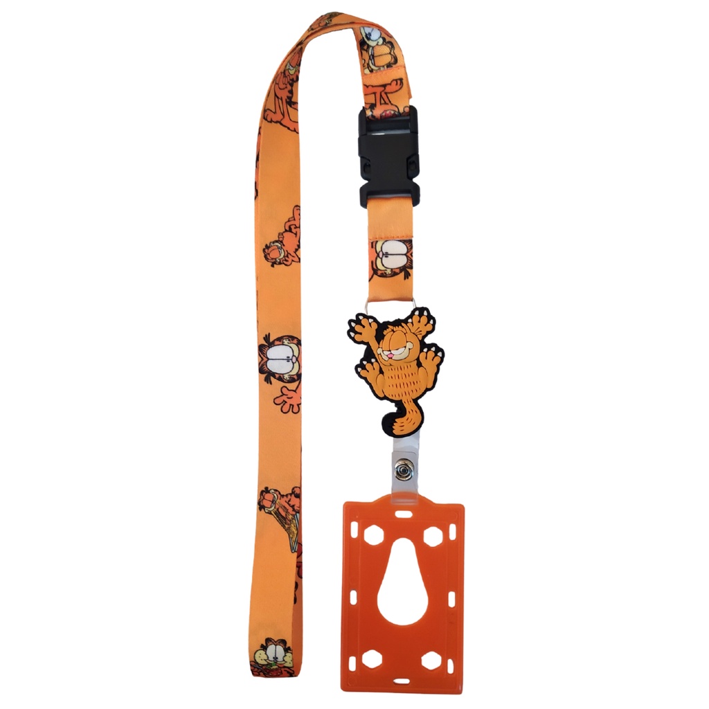 Kit Cordão Garfield com Fecho Engate Rápido + Porta Crachá Retrátil Garfield + Porta Cartão Laranja