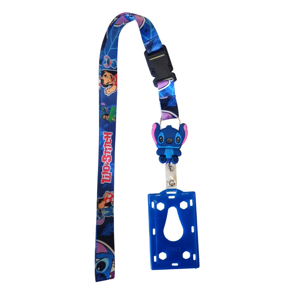 Kit Cordão Lilo & Stitch Azul com Fecho Engate Rápido + Porta Crachá Retrátil Personalizado + Porta Cartão Azul