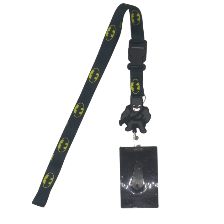 Kit Cordão Batman com Fecho Engate Rápido + Porta Crachá Retrátil Personalizado + Porta Cartão Preto