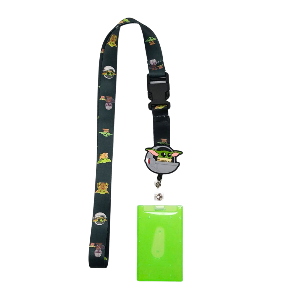 Kit Cordão Pescoço com Fecho Engate Rápido + Porta Crachá Retrátil Yoda Nave + Porta Cartão Verde