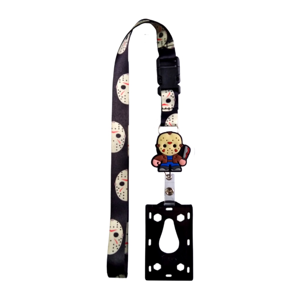 Kit Cordão Jason Voorhees com Fecho Engate Rápido + Porta Crachá Retrátil + Porta Cartão Preto