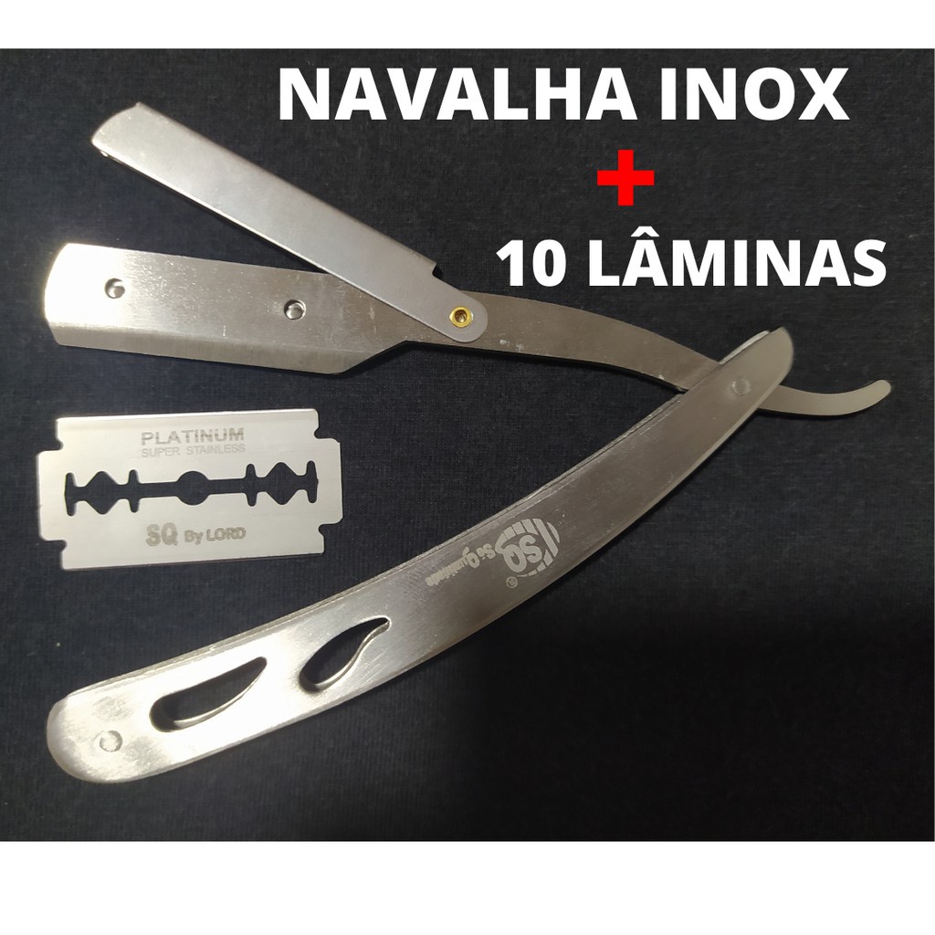 Navalha Navalhete Para Barbeiro Barbe Cabeleireiro Profissional Aço INOX PRATA KIT COM 10 LAMINAS Ativo