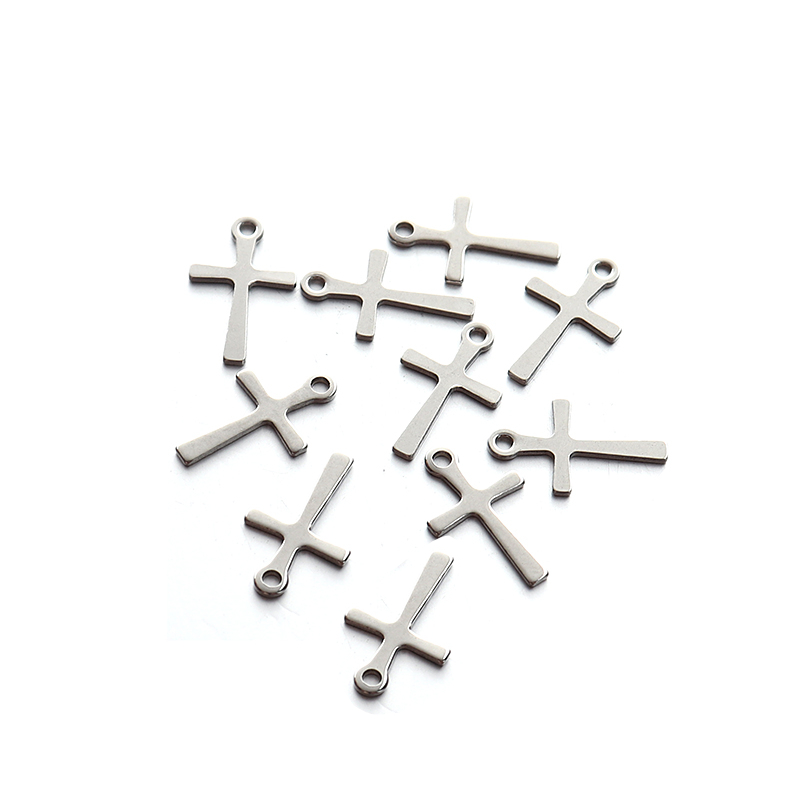 Kit 10 Mini Pingente de Cruz Crucifixo em aço inox prata prateado ideia para colar brinco pulseira artesanato
