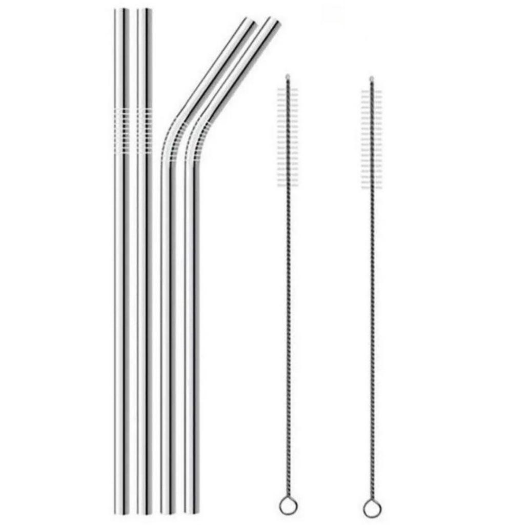 Kit Canudo Aço Inox 8mm Grosso Reutilizável sustentável Para Milk Shake + Escovinha De Limpeza