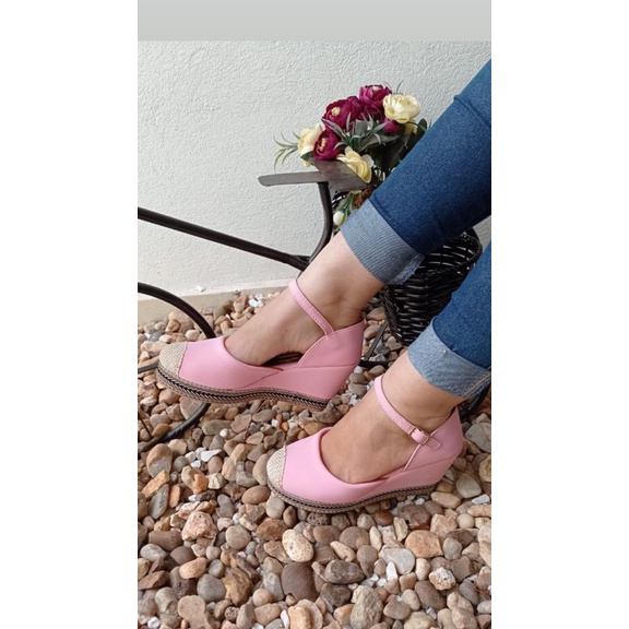 Sandália Feminina Anabela Salto Alto Plataforma De Amarrar