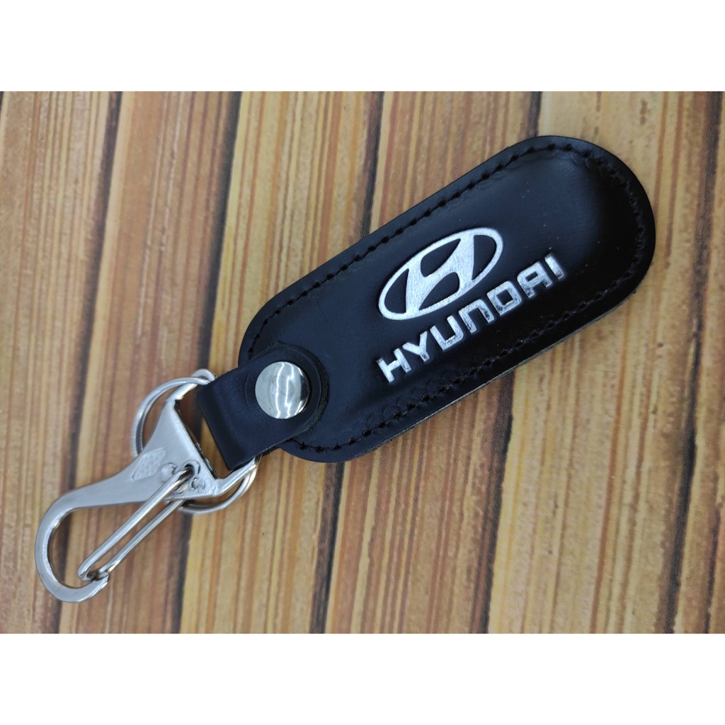 Chaveiro Preto Hyundai em Couro e Metal com Logomarca, Argola e Mosquetão