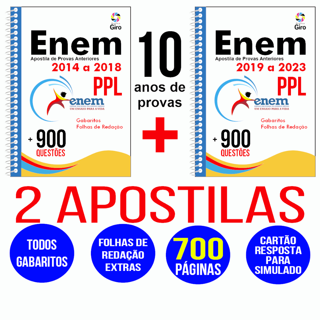 Apostila Enem Provas Antigas Anteriores PPL 10 anos de 2014 a 2023 com Gabaritos e Folhas de Redação