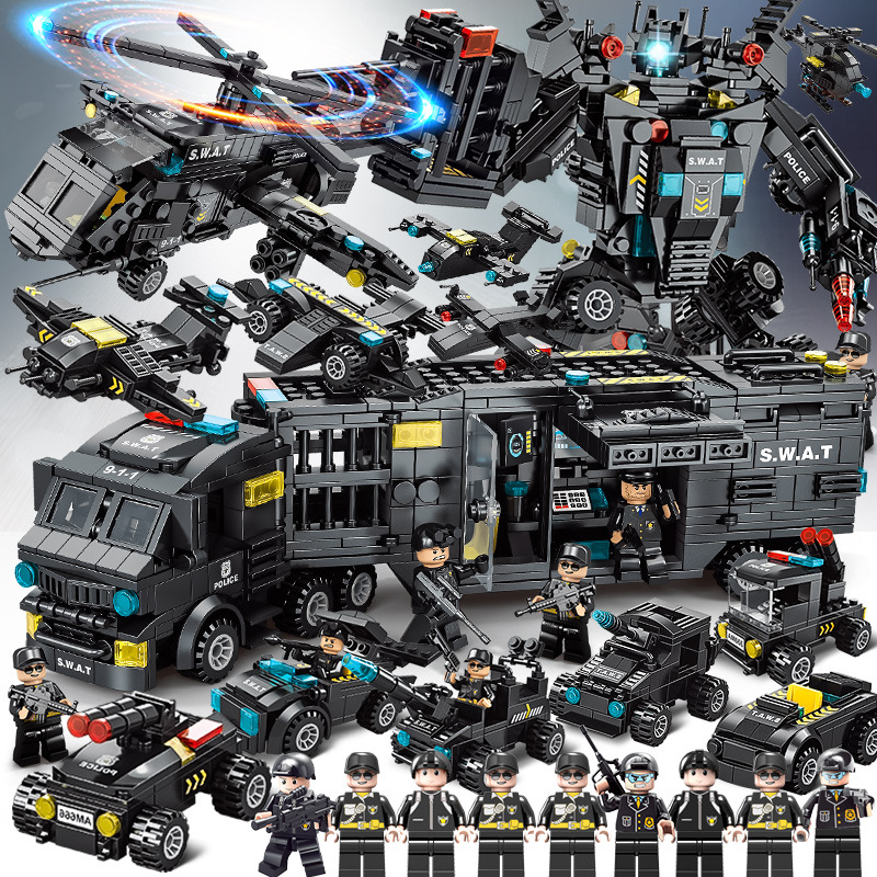 1.000pcs Blocos de construção montados para crianças Meninos Brinquedos Educativos para Carros Brinquedos para Carros Robô Tanque Porta-aviões Modelo de Navio de Guerra Educacional Série de Polícia de Cruzeiros Série Militar Mecha