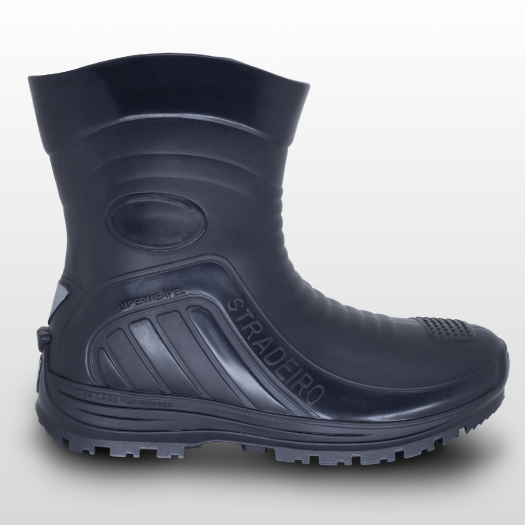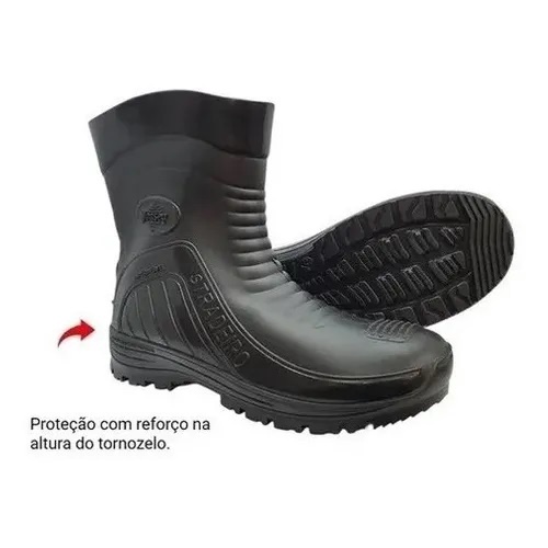 Bota de Chuva Motoqueiro Pantaneiro Em PVC Cano Curto C/ Refletivo Confortável e 100% Impermeável