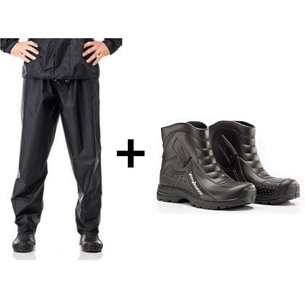 KIT contendo uma Calça De Chuva Para Motoqueiro Impermeavel Motoboy + Bota De Chuva Moto Motoqueiro 100% Impermeável - Pantaneiro