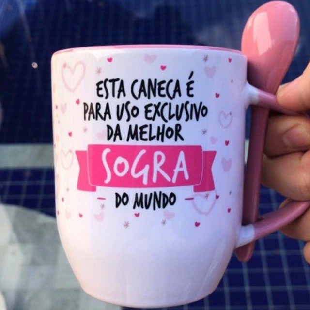 Caneca Personalizada USO EXCLUSIVO DA MELHOR SOGRA DO MUNDO + te amo sogra (cerâmica branca 325 mL) - COM COLHER - XÍCARA