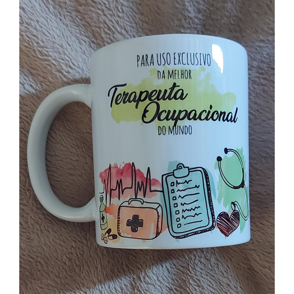 Caneca Porcelana Uso Exclusivo Melhor Terapeuta ocupacional com nome 325ml
