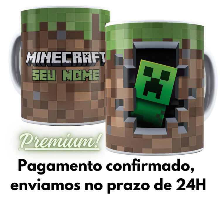 Caneca personalizada de porcelana / cerâmica 325ml - coleção de canecas Minecraft com nome personalizado