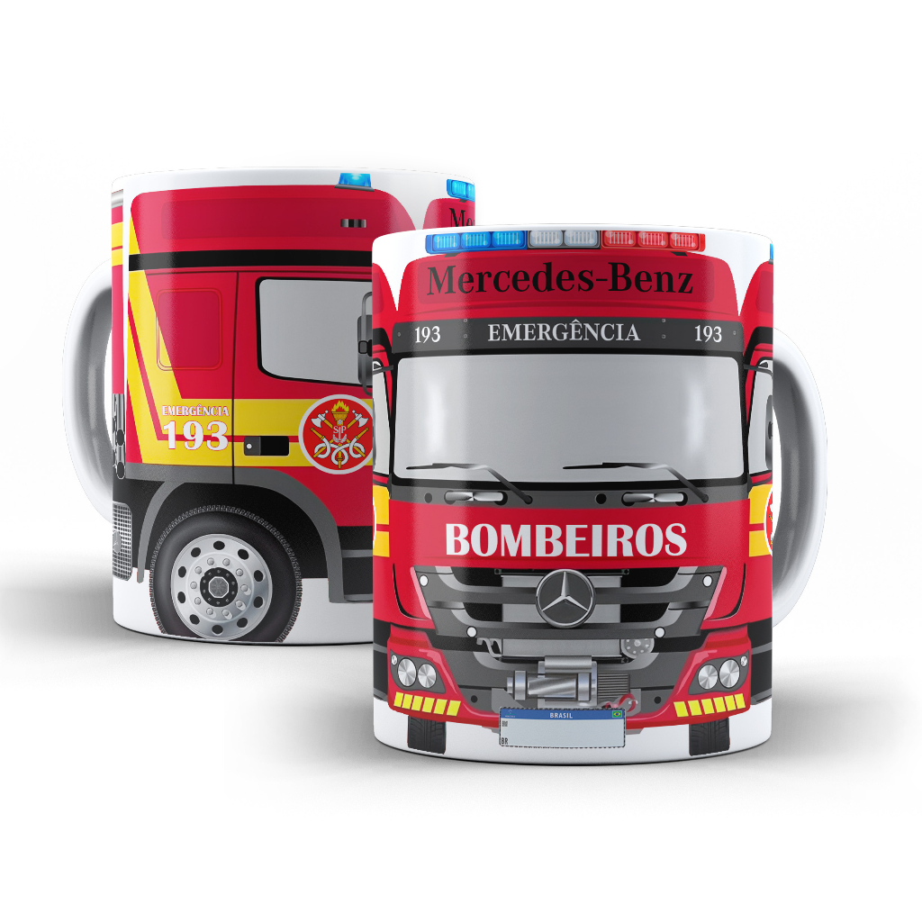 Caneca Profissão Bombeiro, Personalizada com nome na Placa, Porcelana 325ml