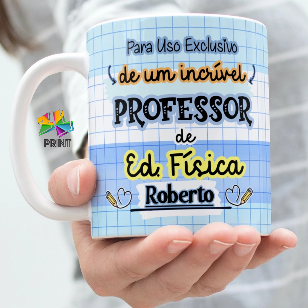 Caneca Porcelana Uso Exclusivo de um incrível PROFESSOR DE EDUCAÇÃO FÍSICA personalizada com Nome - Est. 0113 Dia dos Professores ZLprint