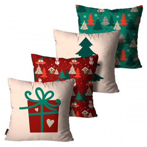 Kit com 4 Capas para Almofadas Natal Vermelho e Bege - 45x45cm