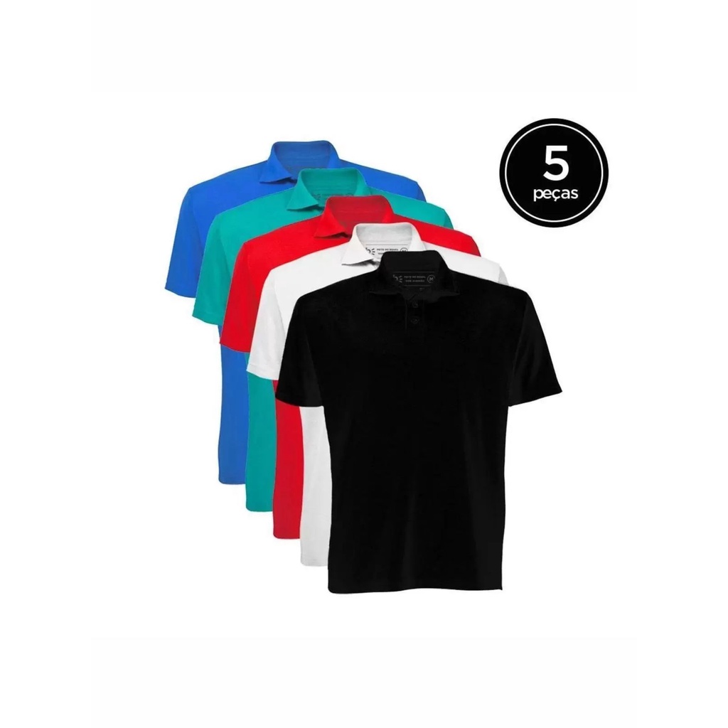 Kit 5 Camisa Gola Polo Masculina Básica Poliéster Piquet