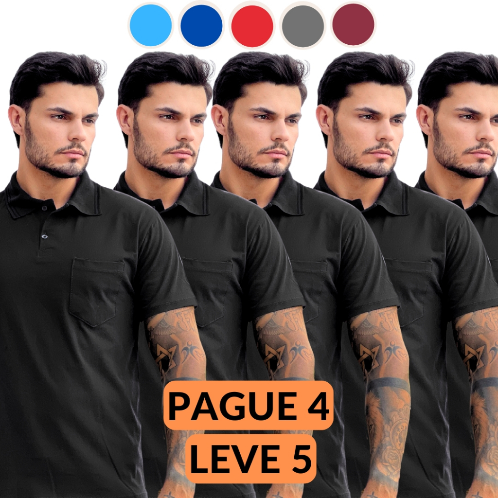 Kit 5 Camiseta Gola Polo Masculina Com Bolso Algodão 30.1 Casual Blusa Social Camisa Gola Polo Masculina Plus Size