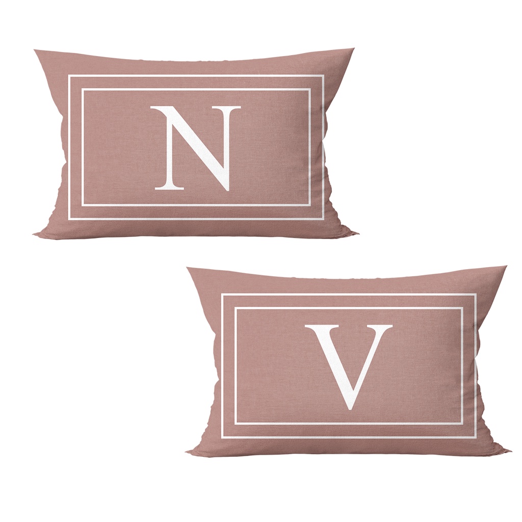 Kit 2 Capas Almofadas Baguete 50x30 Estampa Letras Iniciais Casal Decoração Rosê