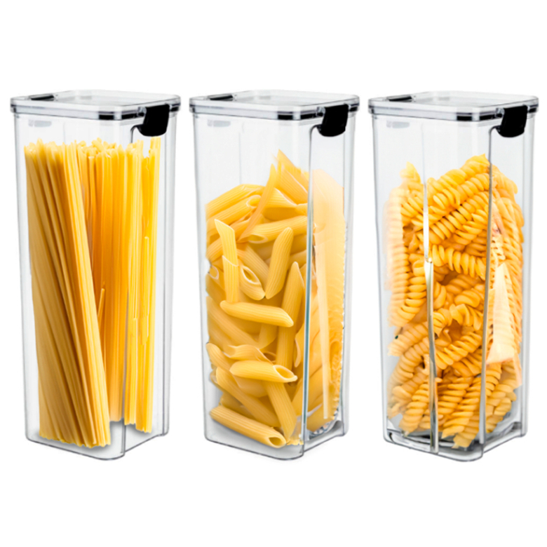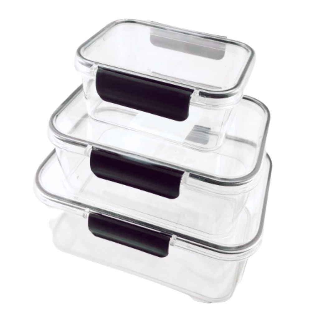Kit C/ 3 Potes Herméticos com Tampa de Vedação Retangular