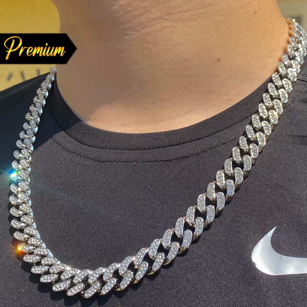 Corrente Cravejada Ice Cuban Prata Hip-Hop/Trap/Rap + Caixinha