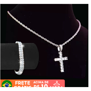 Corrente cordão baiano de luxo com pingente de cruz ice cravejada