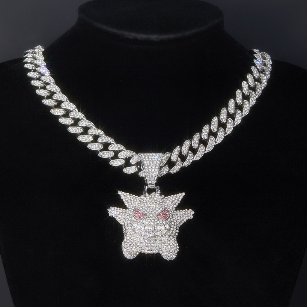 45-75cm Opcional Corrente Cravejada Ice Colar De Diamante 3D Completo Água Geng Fantasma Hiphop Pingente