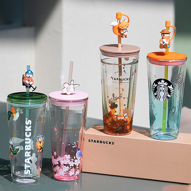 Garantia de Qualidade Starbucks Hot Sale Marca Nova Copo de Palha Rosa Preta de Grande Capacidade Vidro de Camada Dupla com Tampa