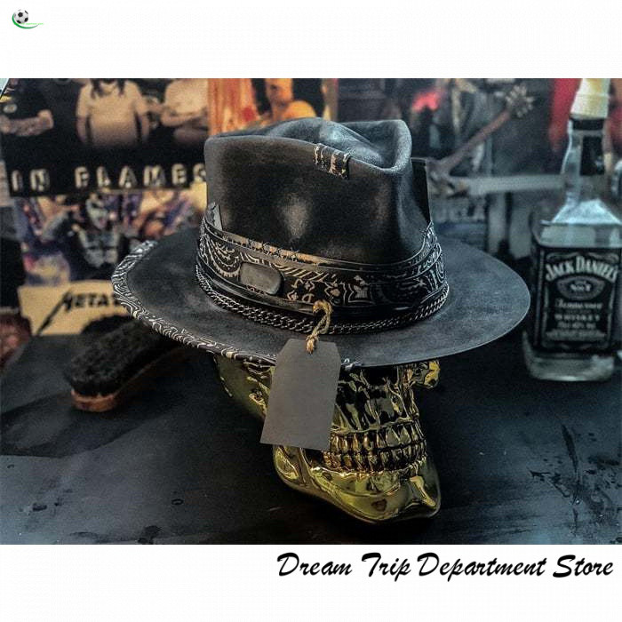 [Estoque Pronto para Venda a Quente] Halloween "Sad Harvester" Chapéu de Caveira Feito à Mão Chapéu de Cowboy de Feltro Garantia de Qualidade ZPP4