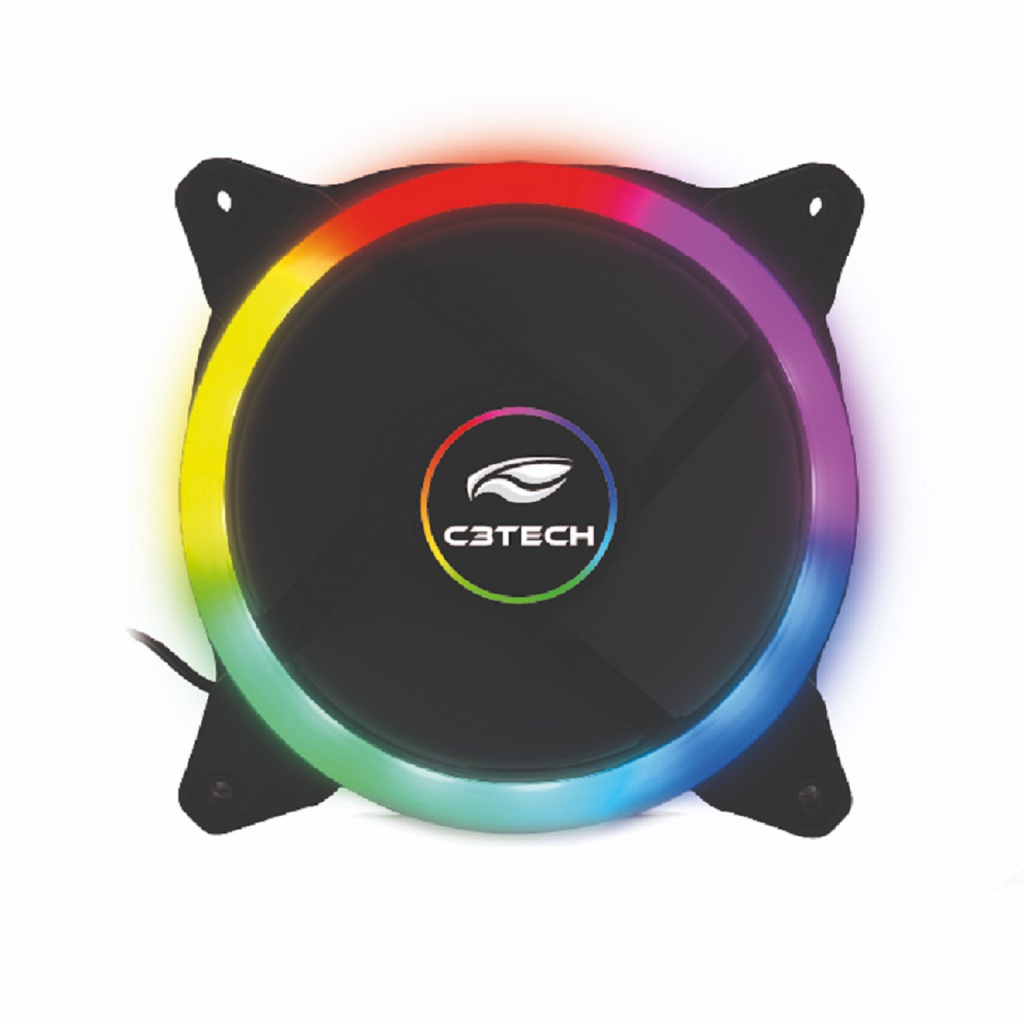 Kit 3 Cooler FAN Ventoinha 120mm 12cm LED RGB P/ PC Gamer Gabinete C3 Tech Branco e Preto