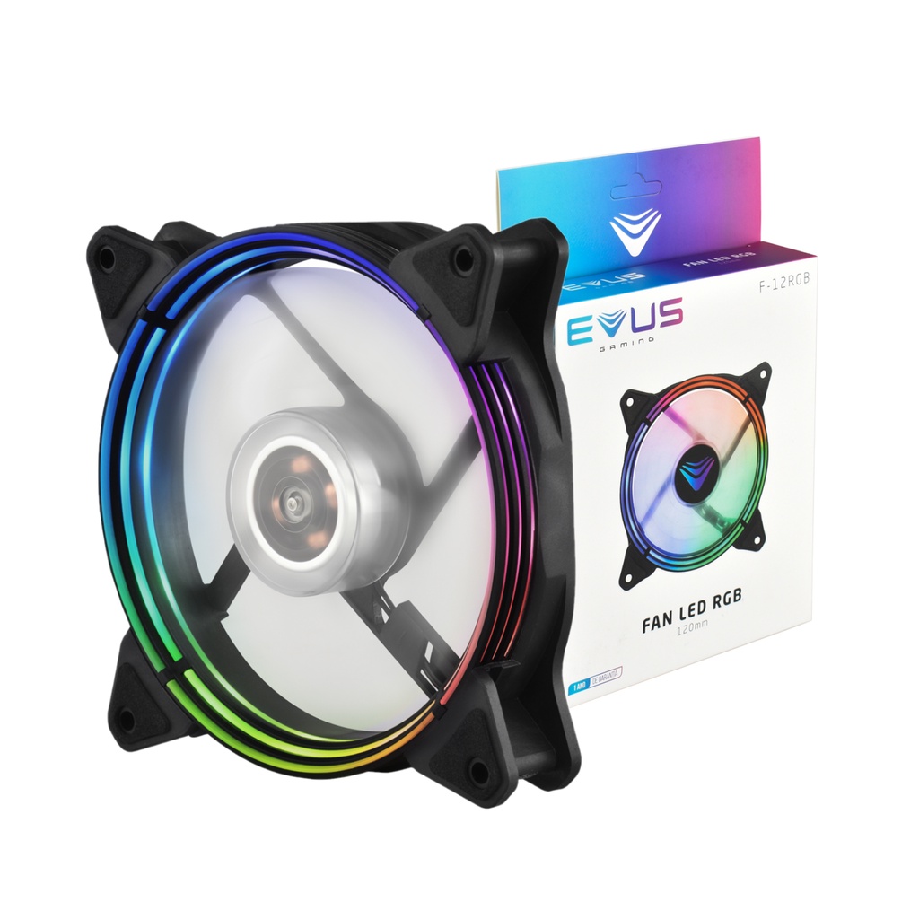 Cooler Fan 120mm LED RGB Efeito Rainbow Modo Random Gamer Conector Molex e Reset Evus F-12RGB