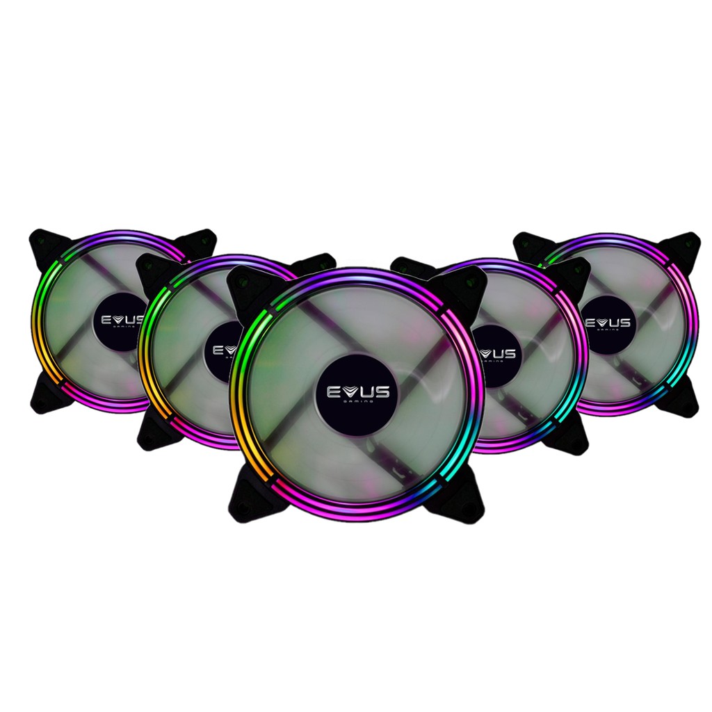 Kit 05 Cooler Fan 120mm LED RGB Efeito Rainbow Modo Random Gamer Conector Molex e Reset Evus F-12RGB