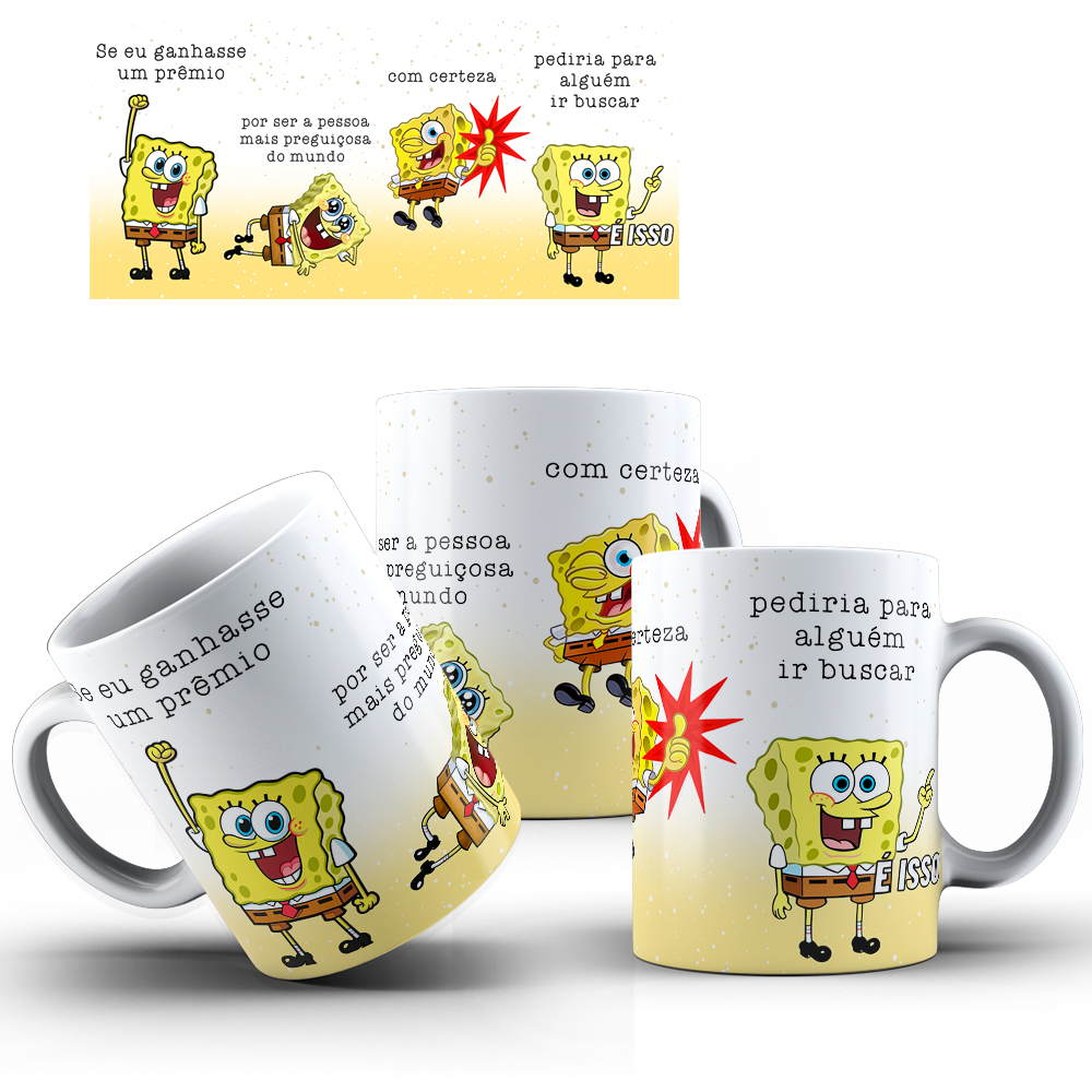 Caneca Decorativa Bob Esponja Porcelana Decoracao Presente