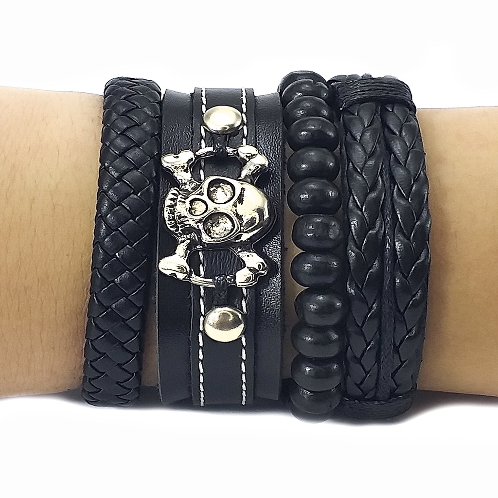 Pulseira masculino/femenino Caveira kits c/4 peças reguláveis.
