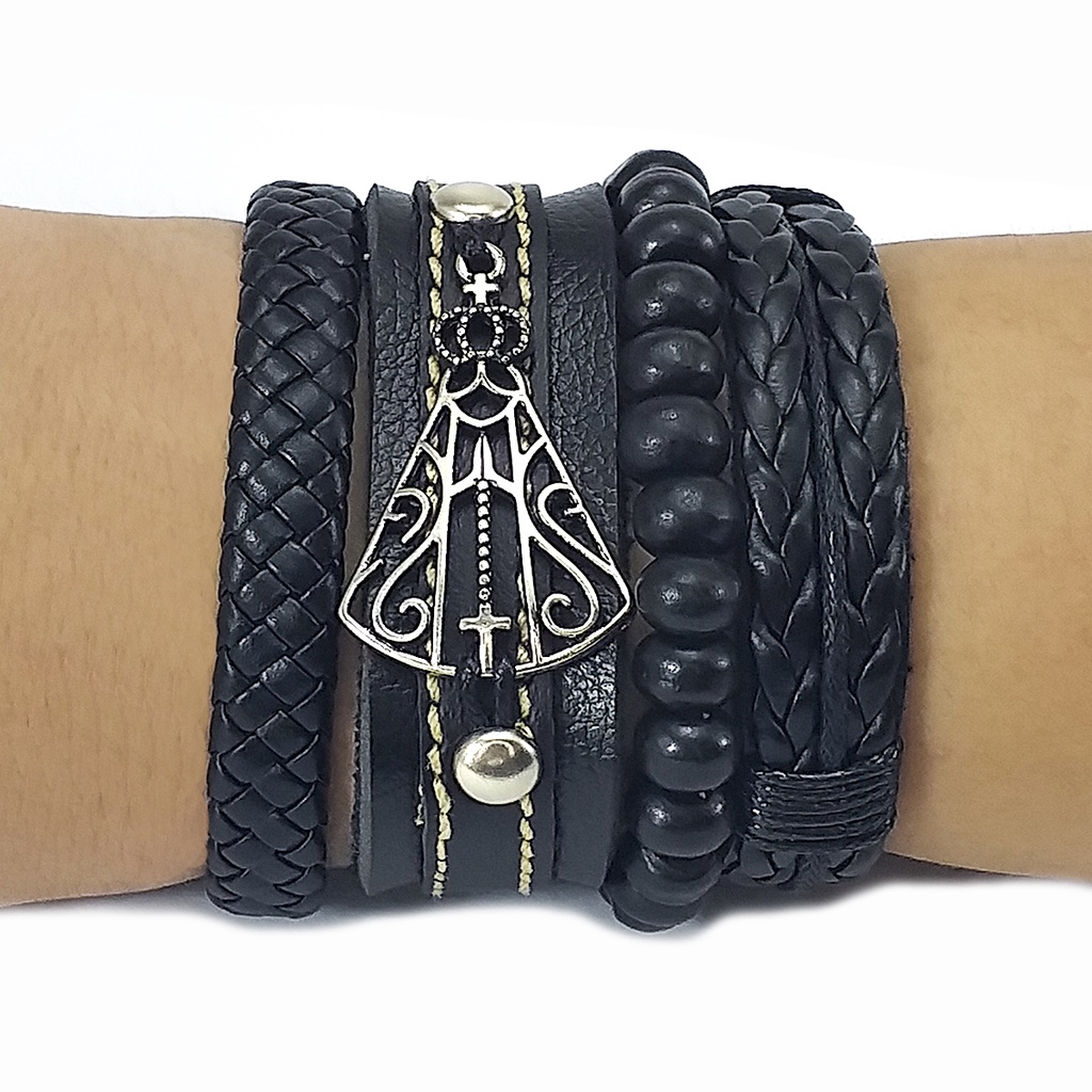 Pulseira masculino/femenino NSA APARECIDA kits c/4 peças reguláveis.
