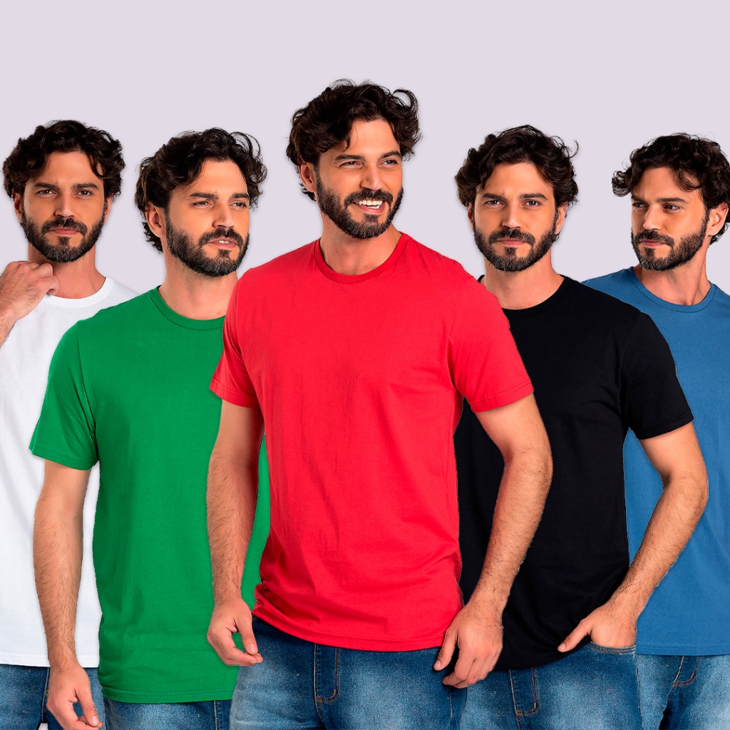 Kit 5 Camisetas Básicas Masculina 100% Algodão Fio 30.1 Penteado Reforço Ombro a Ombro Modelagem Moderna Fabricação Própria