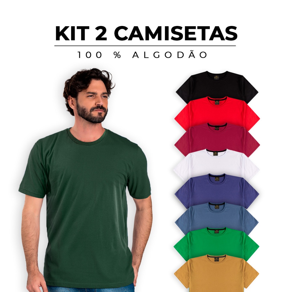 Kit 2 Camisetas Básicas Masculina 100% Algodão Cores Tendência Reforço Ombro a Ombro - Camiseta Masculina Moda Casual