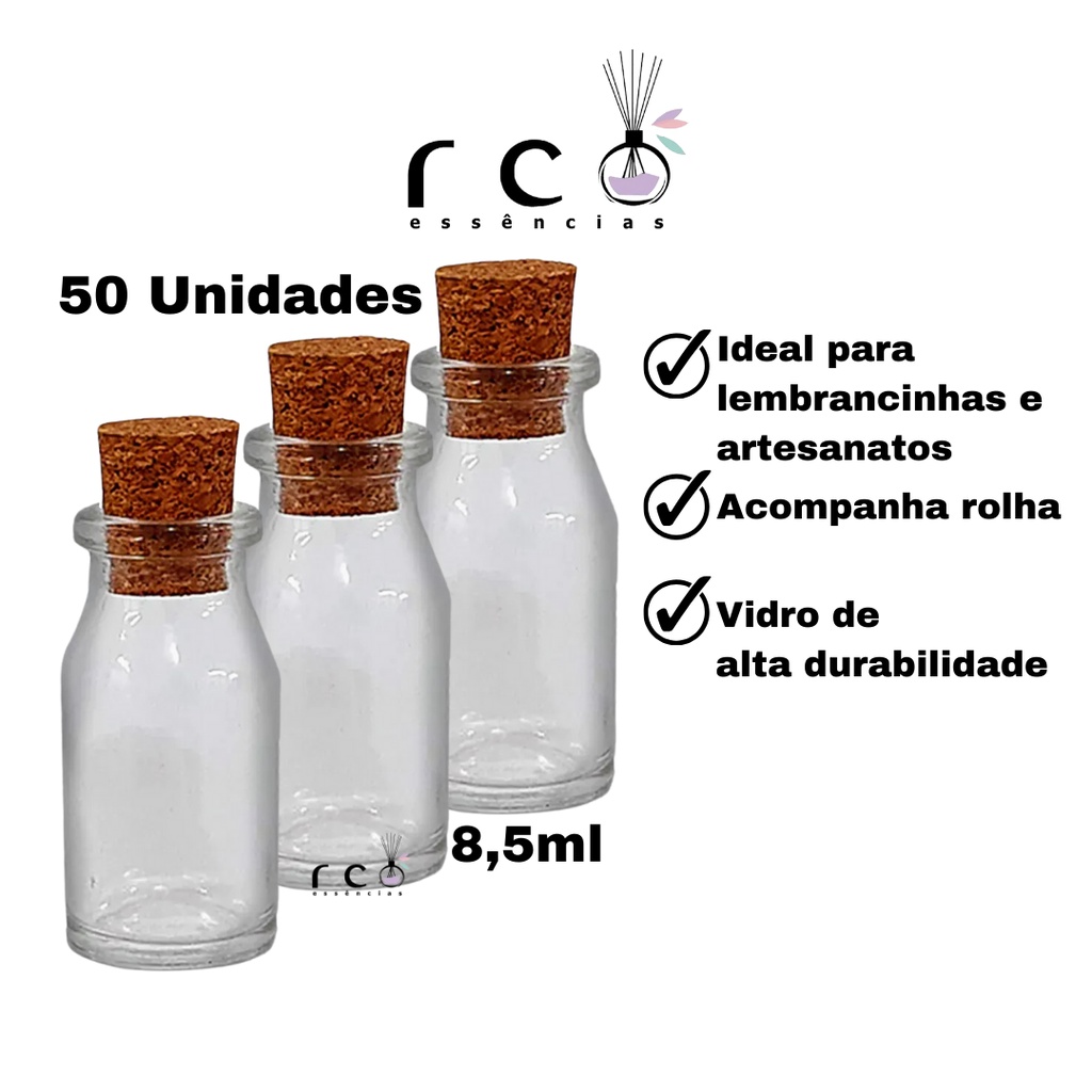 KIT 50 Unidades Vidro Penicilina 8,5ml Frasco Com Rolha para Lembrancinha Casamento Aniversário