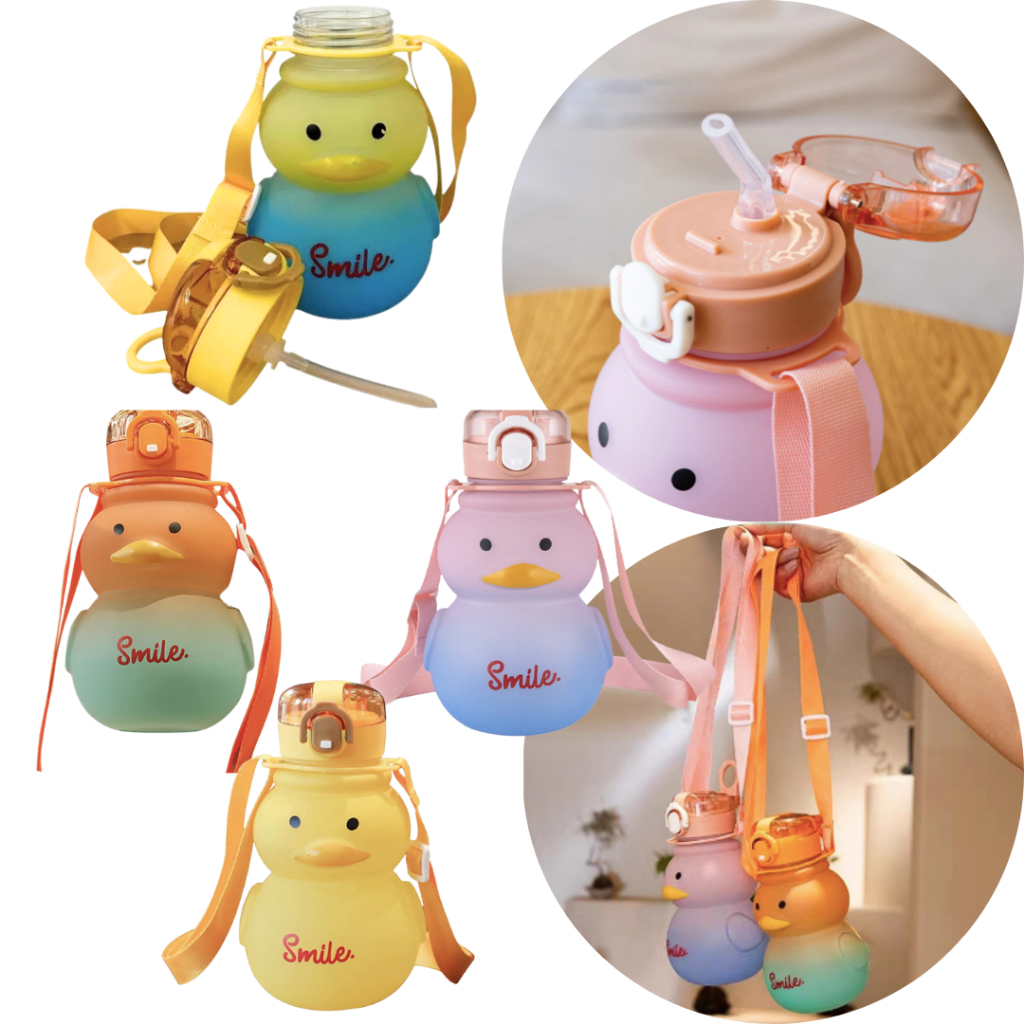 Garrafa Agua Squeeze Infantil Formato De Pato Com Alça Removível De 700Ml