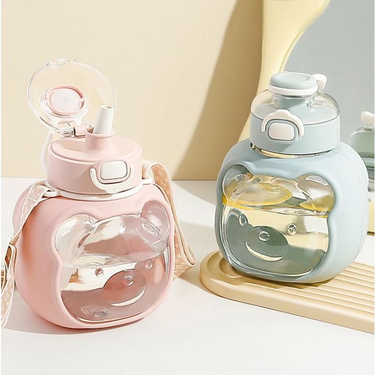 Garrafa De Agua Infantil Ursinho Fofo Smile 700ml Alça com Canudo e Alça